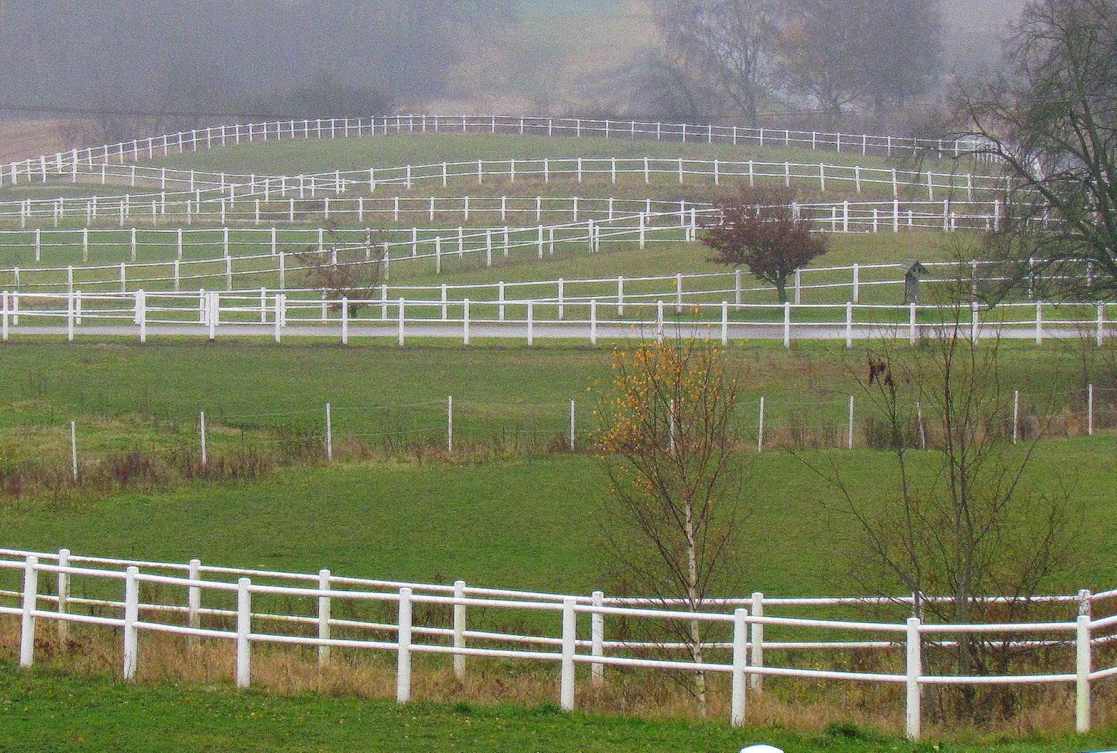 Ett par pilar ser vårgröna ut på lite avstånd. Det är de enda träden som har löv kvar. Det ger ändå en skön känsla att se .