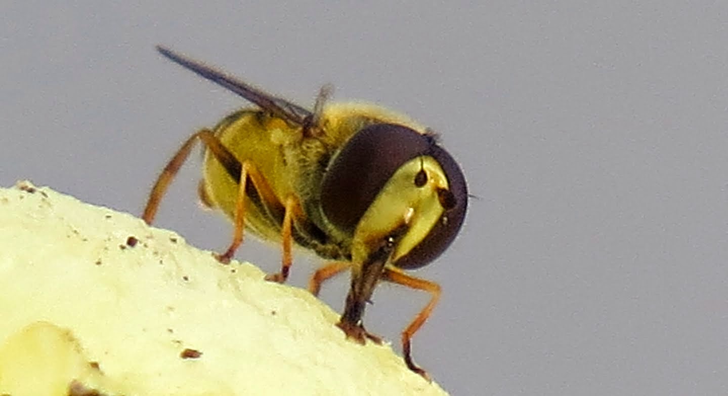 Lokalt här kallas de "Bornholmsflugor". Jag har ingen aning om varför. Vad jag förstår är det en gul solblomfluga, vanligt förekommande i våra trakter. Jag känner inte igen den från Småland.