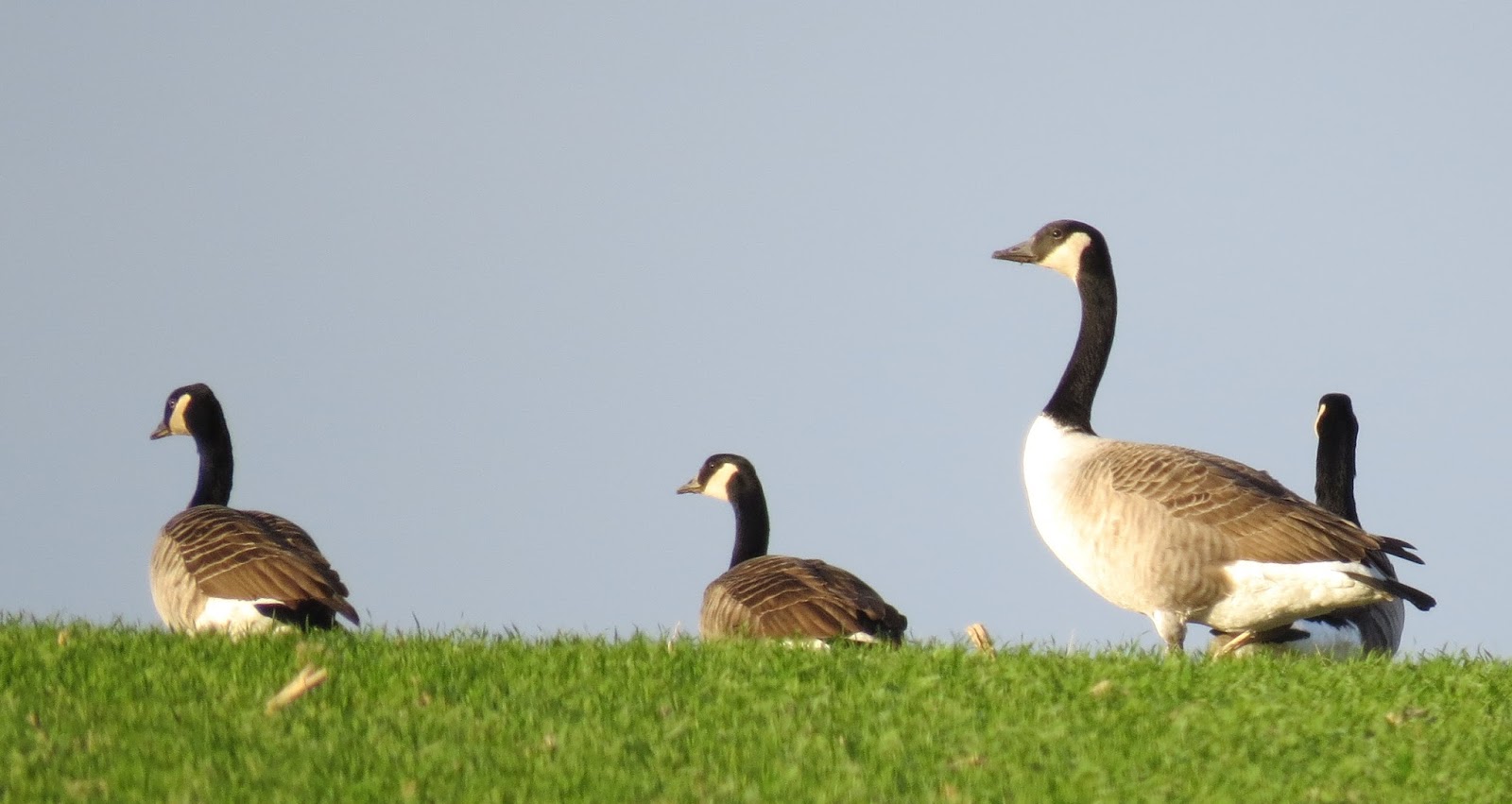 Kanadagässen väljer ofta att vara uppe på krönen av de mjuka kullarna för att hålla koll på omgivningarna.